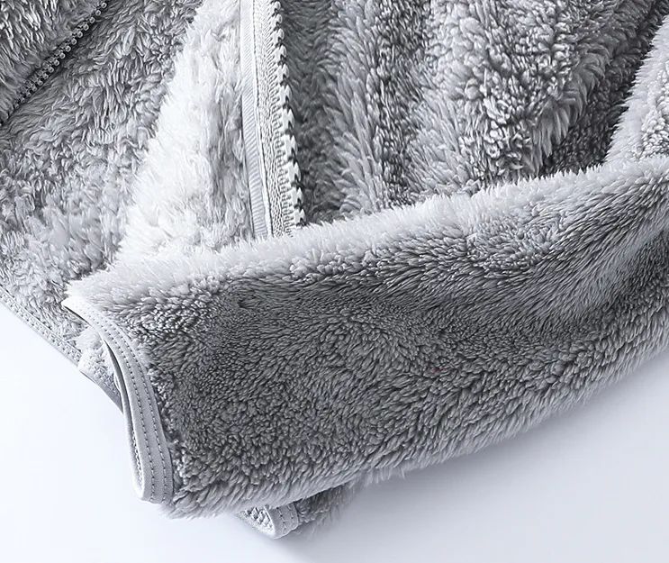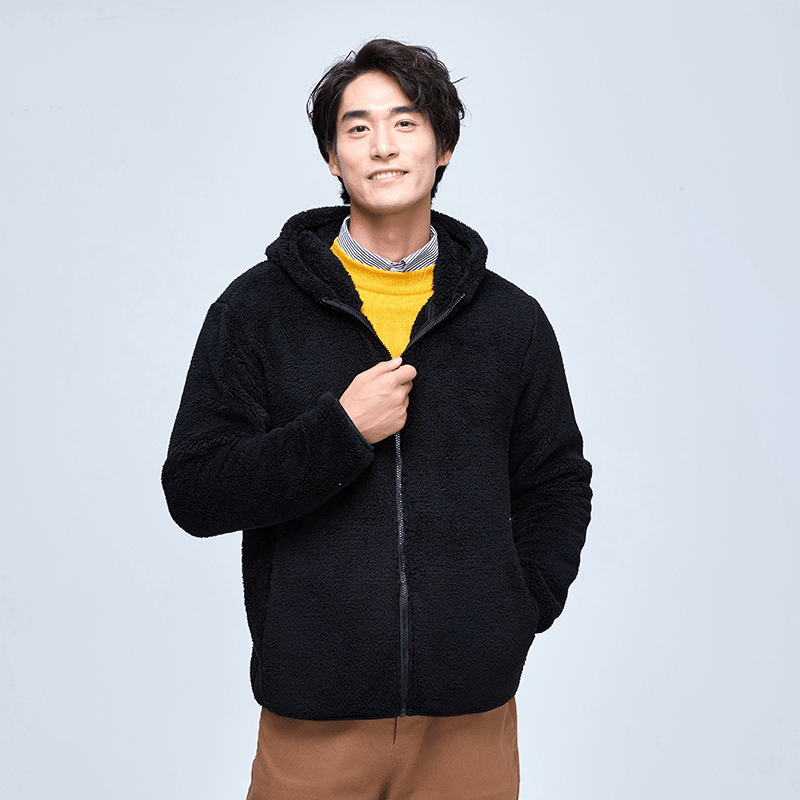 这款仿羊羔绒保暖夹克的正反面,都是由特别选用的高品质仿羊羔绒制作而成,每一根绒毛都非常的细密修长。