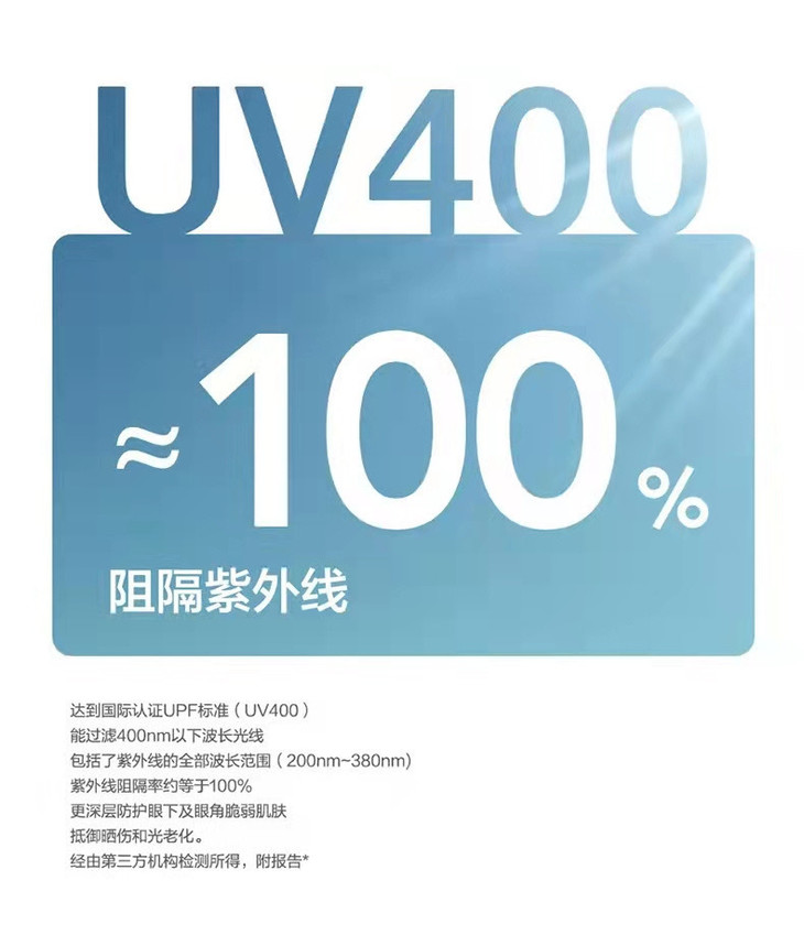 达到国际认证UPF标准(UV400)