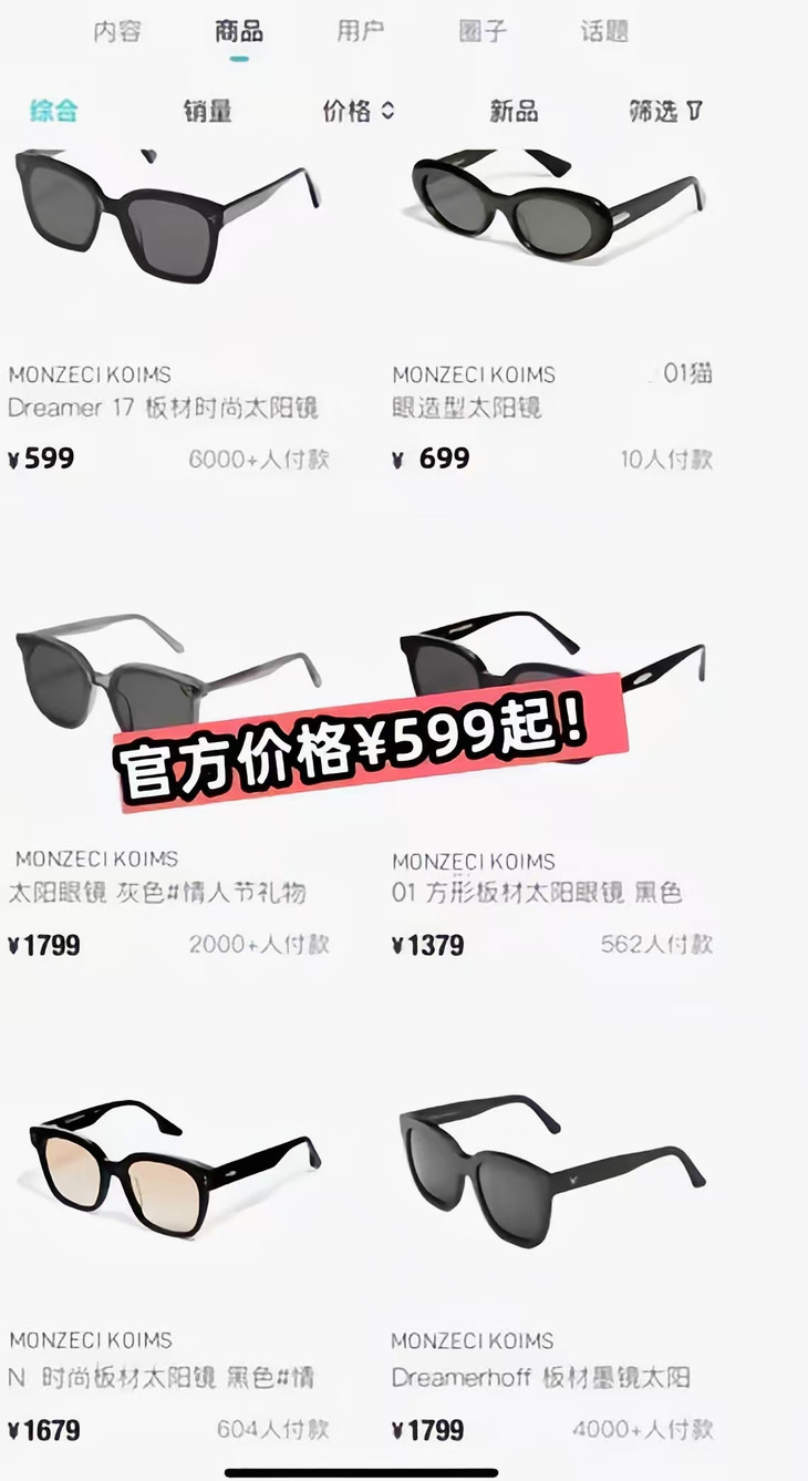 他家墨镜线下柜上都💰599-699