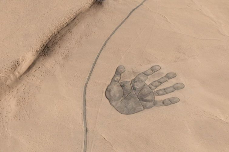 在内蒙古二连浩特的东北部,茫茫大草原上出现一个“如来神掌”,连手指节骨、掌纹都一清二楚。