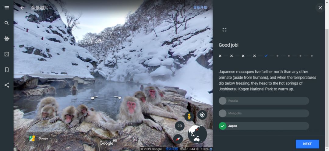 除此以外,还能一边玩游戏一边看风景,回答完之后跳转到世界各个角落,在做题同时也学到了有趣的知识 (假装看懂了题目) 。