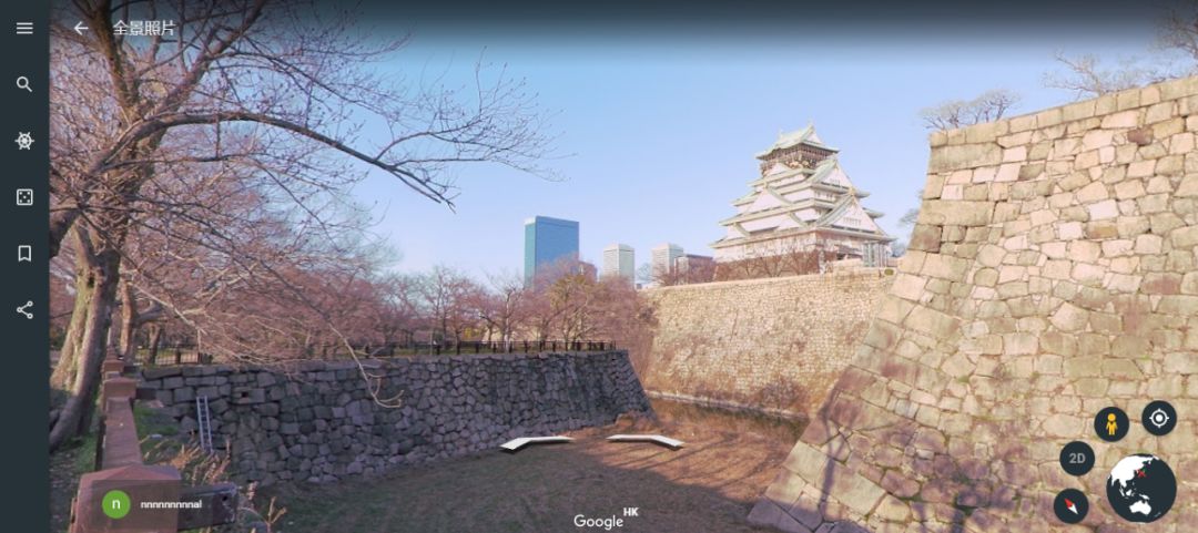 另一端的大阪城公园里的樱花开满了,在谷歌地球看这幅风景,就像从漫画里走出来。