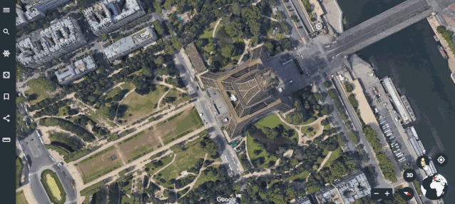 环游世界第一站,不如先去巴黎埃菲尔铁塔。搜索点击,飞!效果酷到炸裂,瞬间有从穿越大气层飞越的即时感。