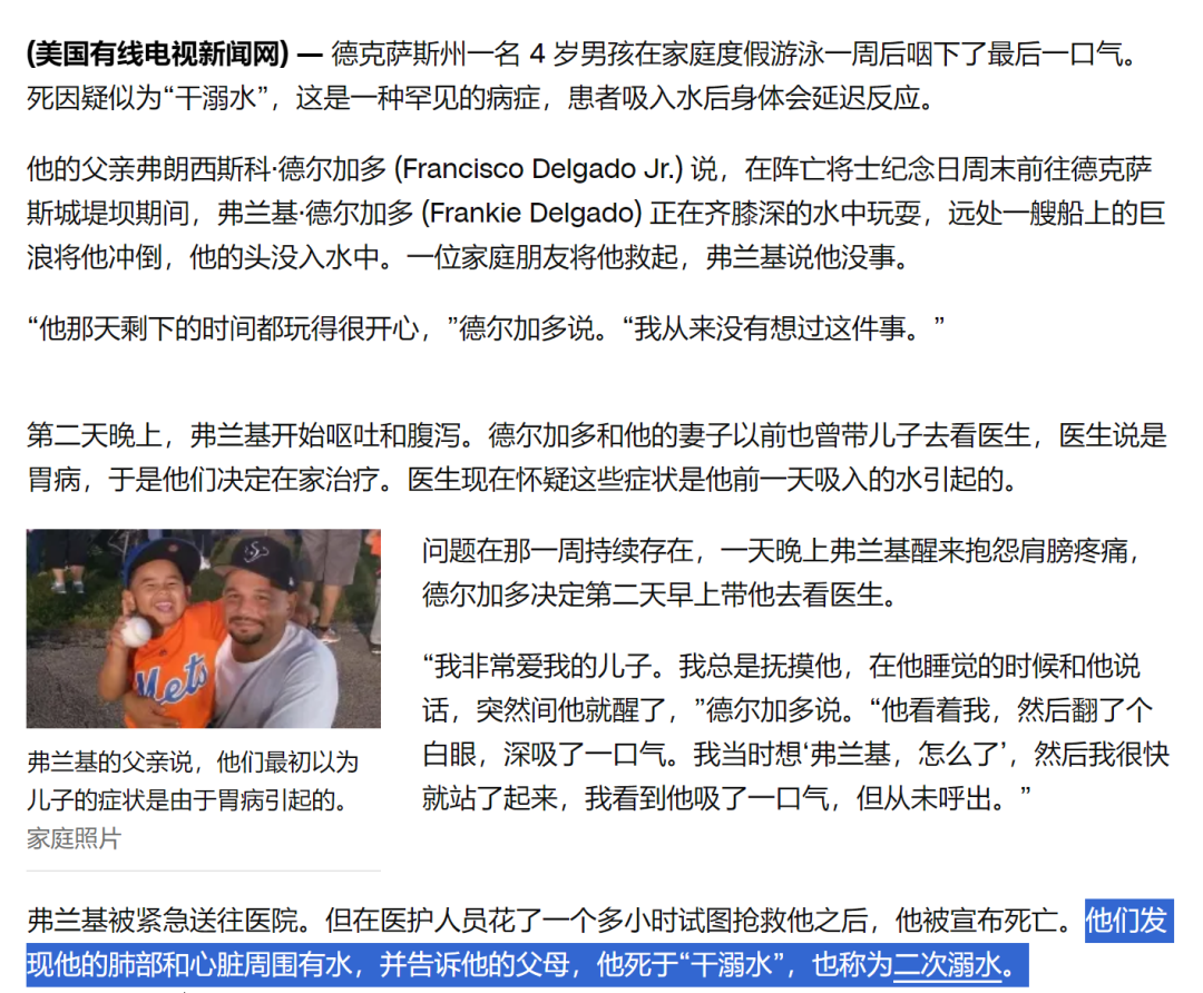 2017年德克萨斯州一幼儿疑因“干溺水”死亡