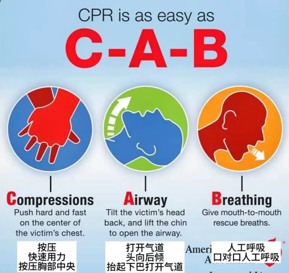 C 胸部按压-A 保持气道畅通-B 人工呼吸