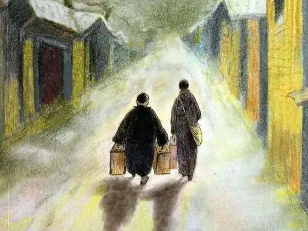 我看见他戴着黑布小帽,穿着黑布大马褂,深青布棉袍,蹒跚地走到铁道边,慢慢探身下去,尚不大难。可是他穿过铁道,要爬上那边月台,就不容易了。他用两手攀着上面,两脚再向上缩;他肥胖的身子向左微倾,显出努力的样子,这时我看见他的背影,我的泪很快地流下来了。