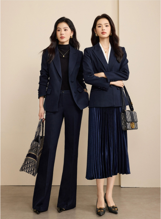 带有挺括骨感的西装面料 与立体剪裁工艺相融合