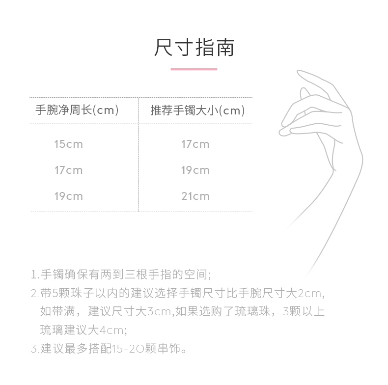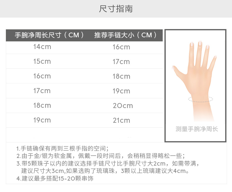 手镯尺寸选择指南,可以根据自己手腕周长来选择合适的尺寸哦~