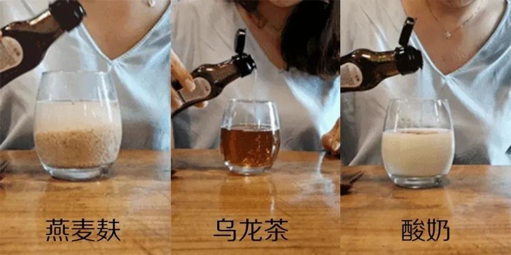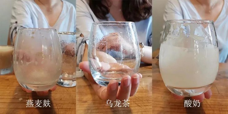 我们经常吃的油腻后,习惯喝杯酸奶或者乌龙茶解腻,其实燕麦麸才真的解腻!我们依次在燕麦麸、乌龙茶、酸奶杯中加入食用油。