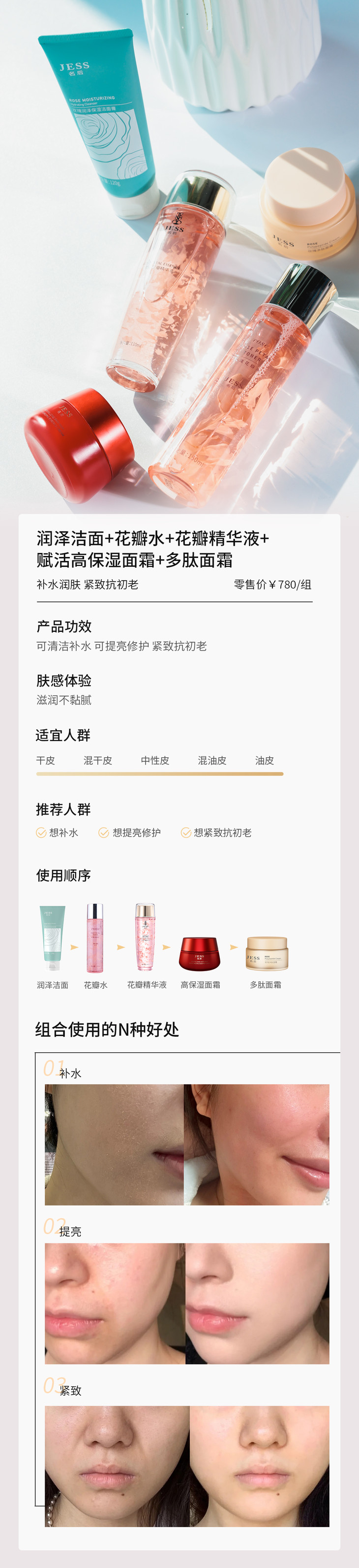 10)、润泽洁面膏+花瓣精华液+大红瓶面霜+多肽面霜使用方法