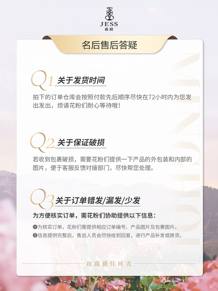 姐妹们,三亚玫瑰谷线下商场产品也是从广州运输过去的,请放心品质与您在玫瑰采购的产品品质一定是一样的💓,线上只需认准微信小程序【名后官方旗舰店】即可‼