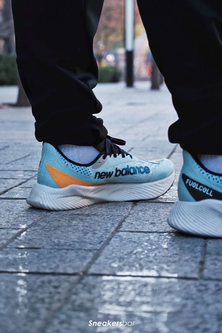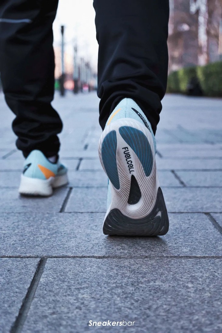 我个人非常喜欢这种通过注入氮气对TPU进行发泡的中底科技,相较New Balance之前在跑鞋上常用的Freshfoam中底,FuelCell的缓震极限更高,脚感也就更软。