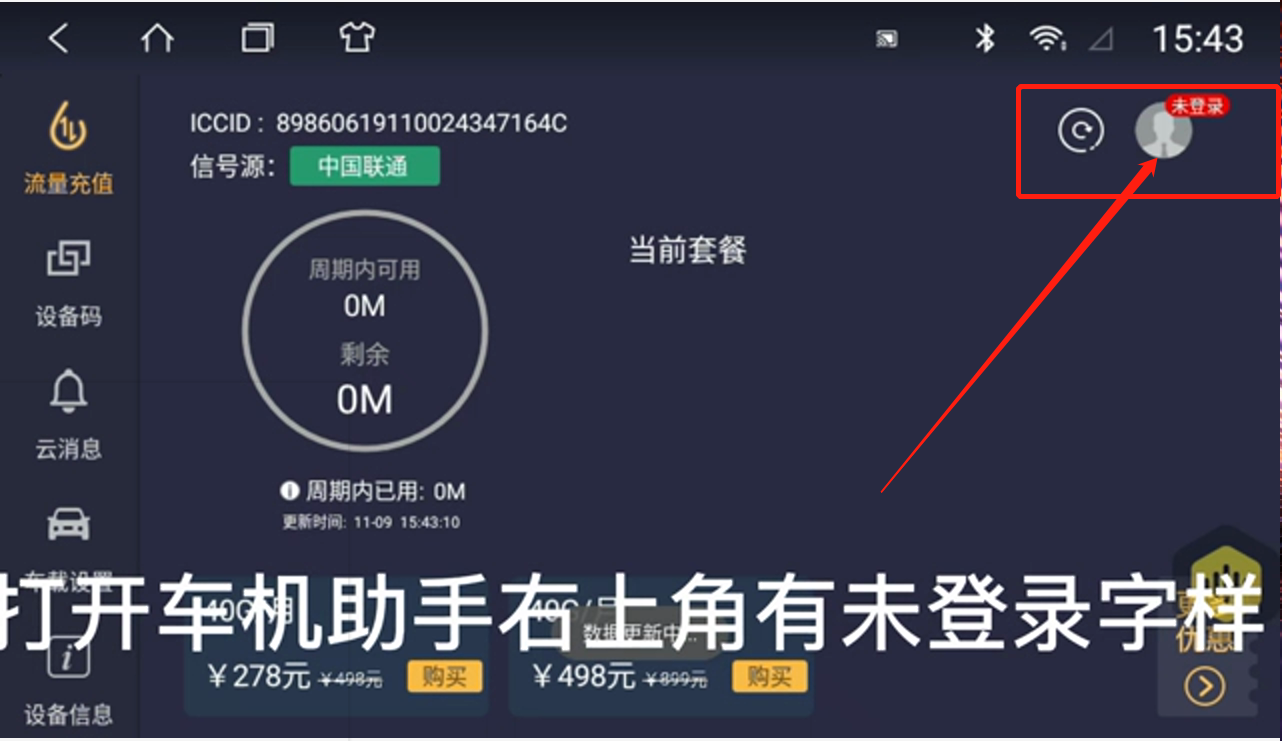 步骤2:更新车机助手后,打开【车机助手】,看到右上角有【未登录】的字样,点击进去。