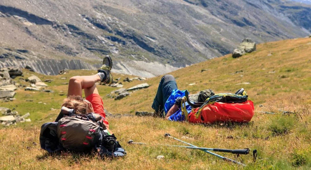 休息时应尽可能坐下(有条件甚至可以平躺),如果不方便坐下休息,可用登山杖支撑背包,或者靠在山石上分担背包重量。休息的同时可以趁机喝水以及吃一些东西,保证下一段路程的能量供给。