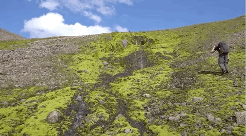 到坡顶后也别着急赶路,停下来休息2~5分钟,可以只是站着,有条件可靠着石头坐一下,平复快速的心跳,让心率回归舒适区间,减少无氧运动的疲劳物质产生。
