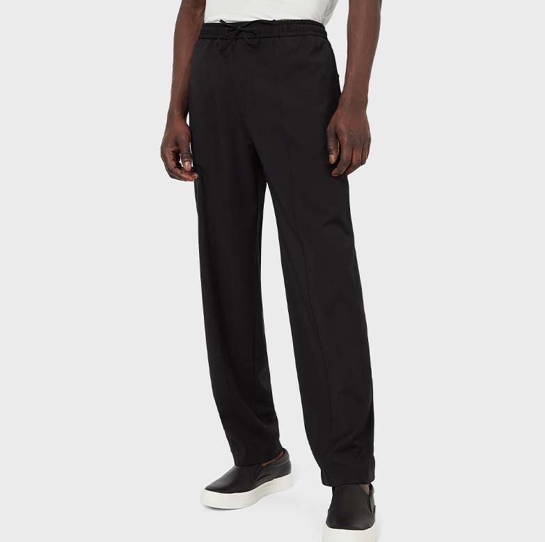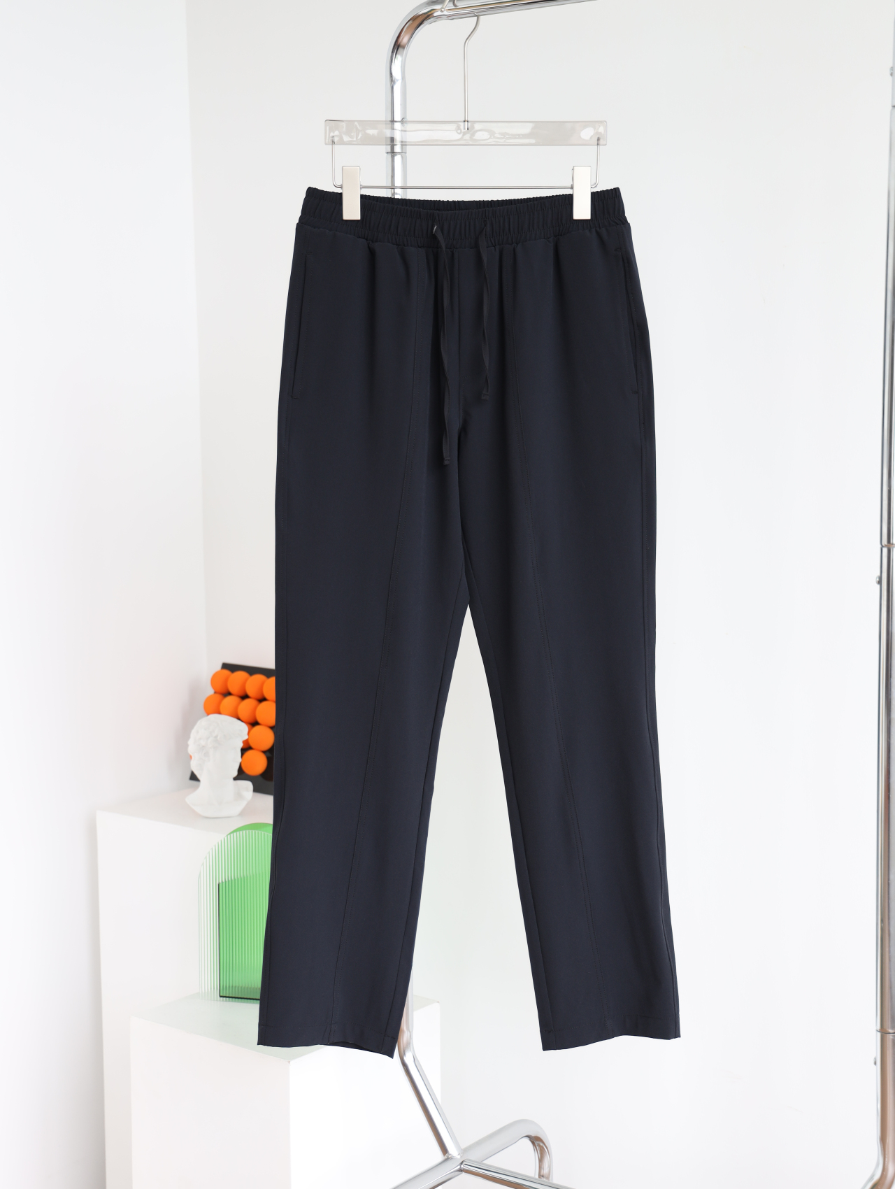 正面有2条类似西裤的缝线,更拉长比例,松紧带腰围,轻松便捷
