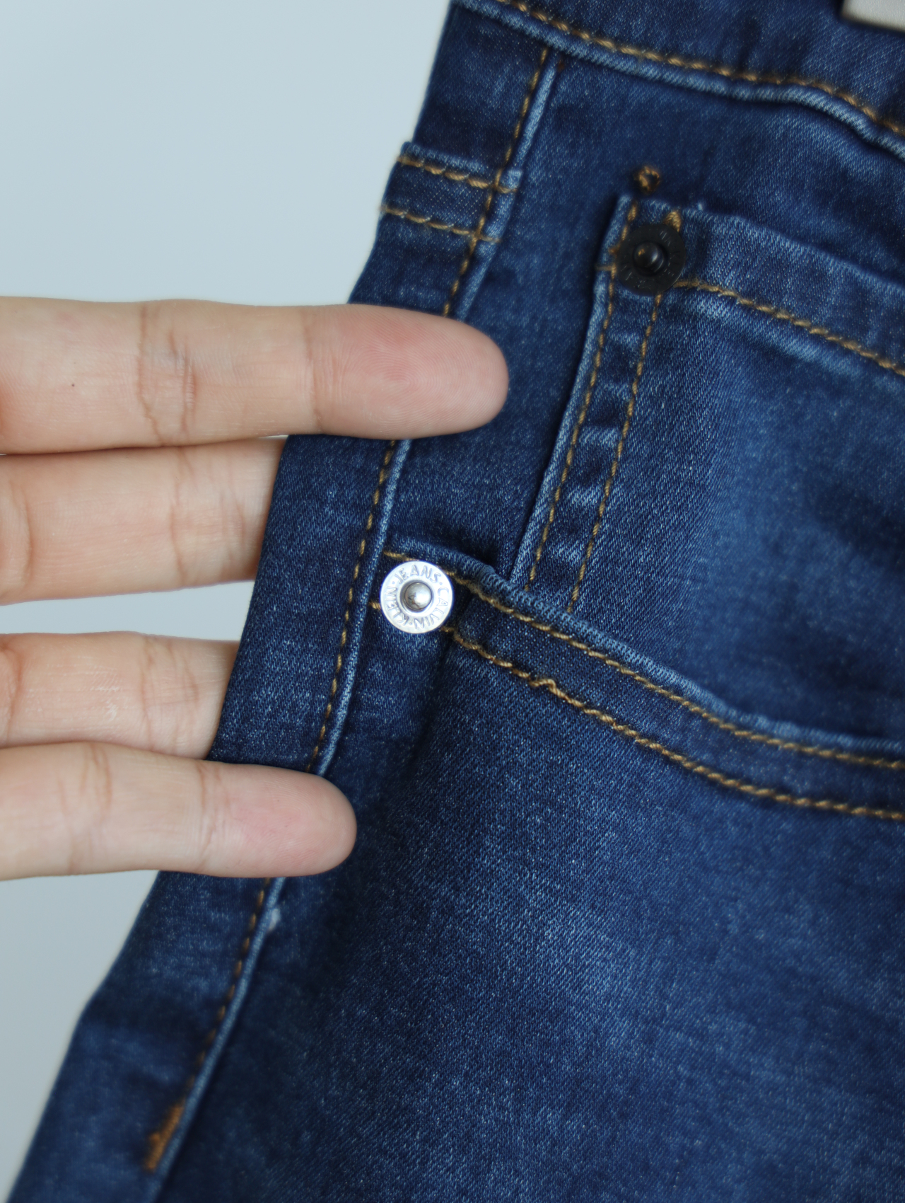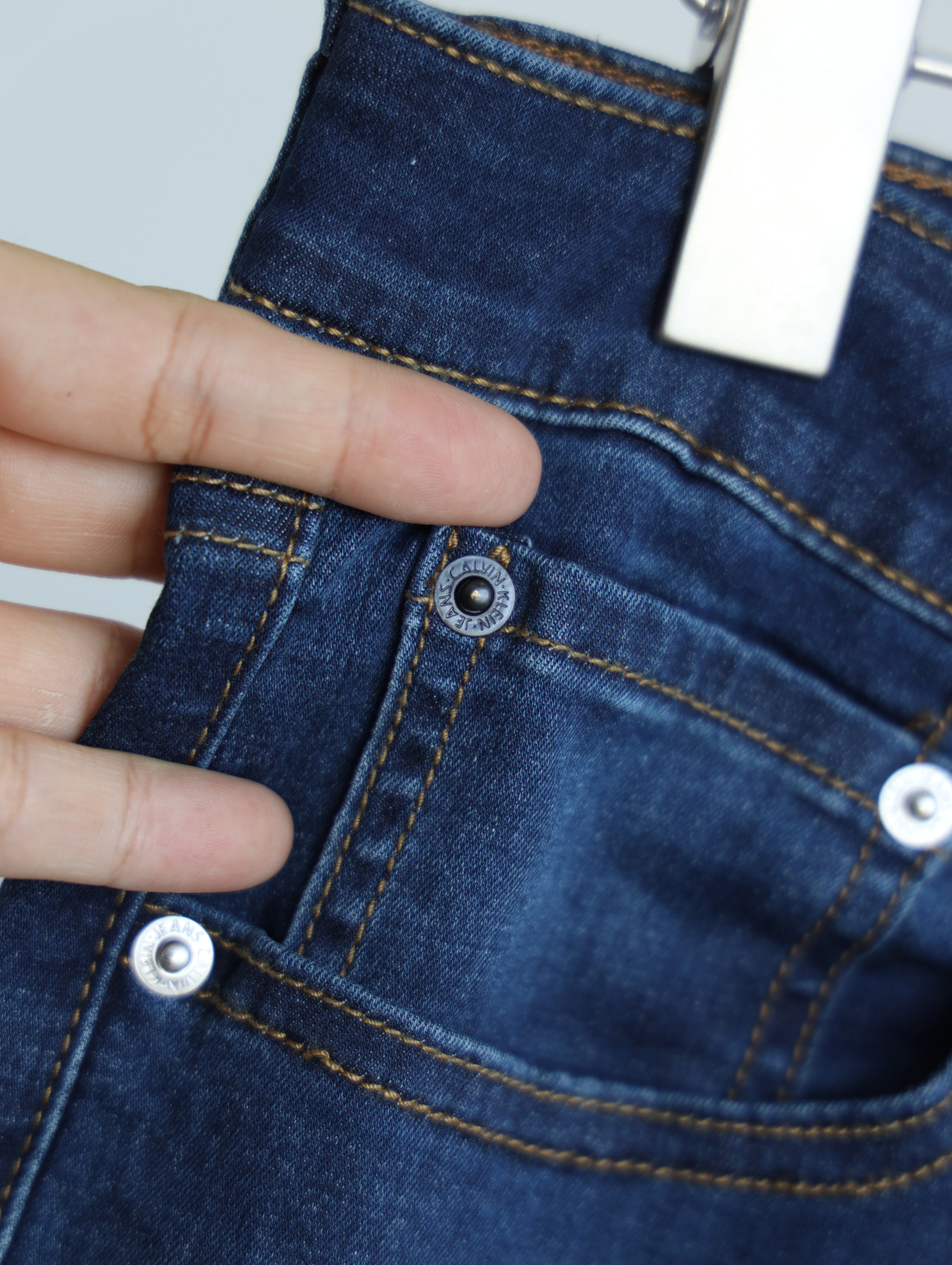 经典的5口袋造型。后腰黄色皮牌。面料薄,夏天穿没问题