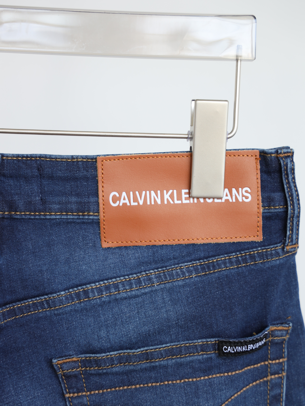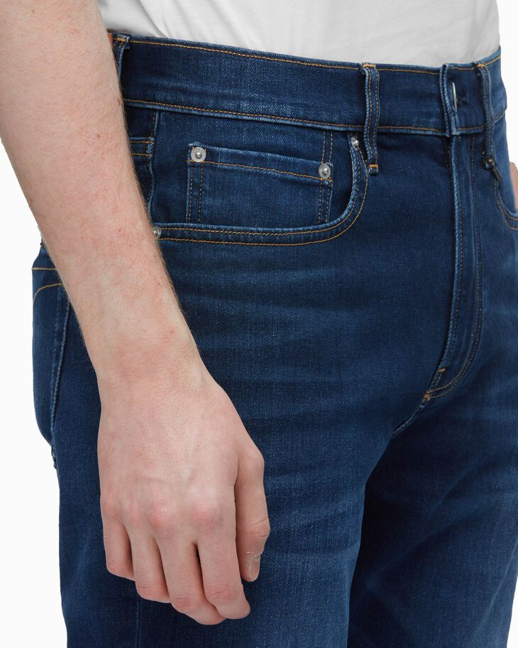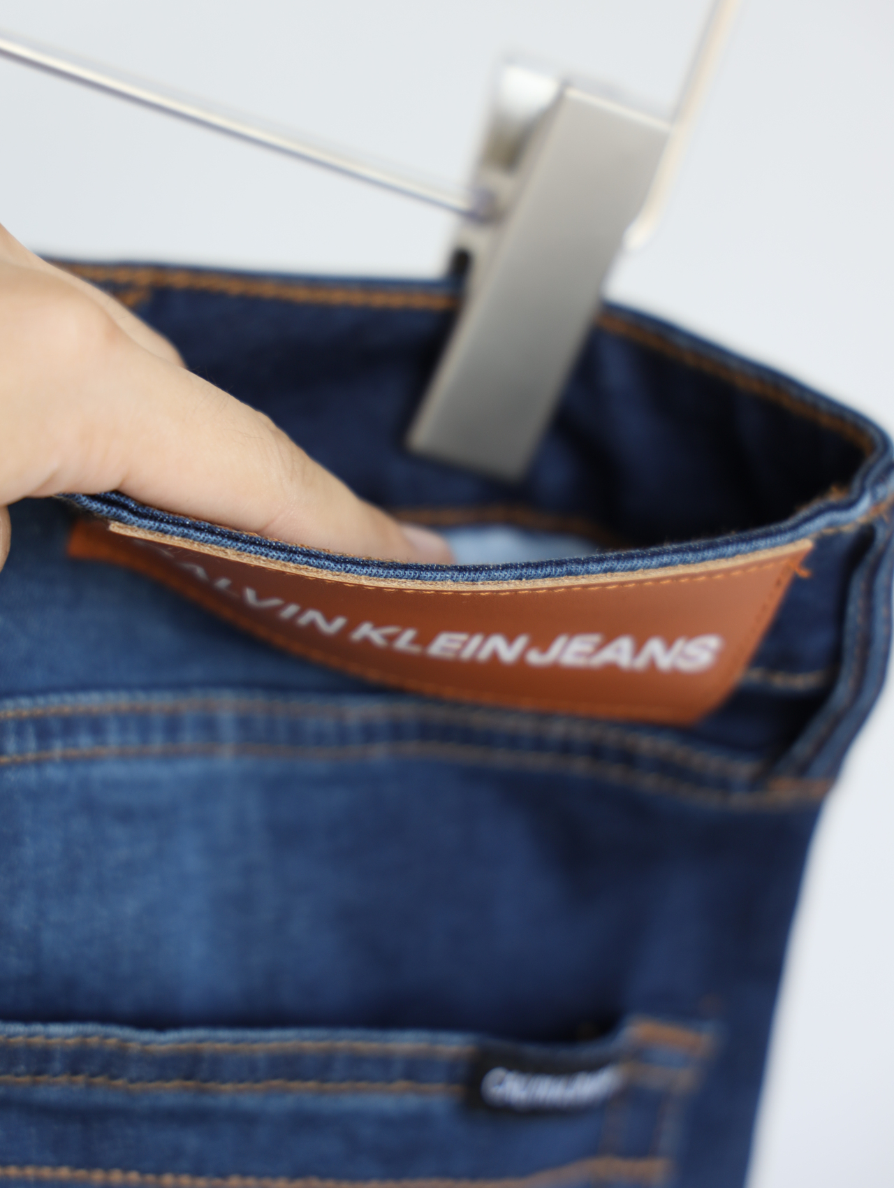 深蓝色水洗,自然做旧磨白,面料混纺带弹力