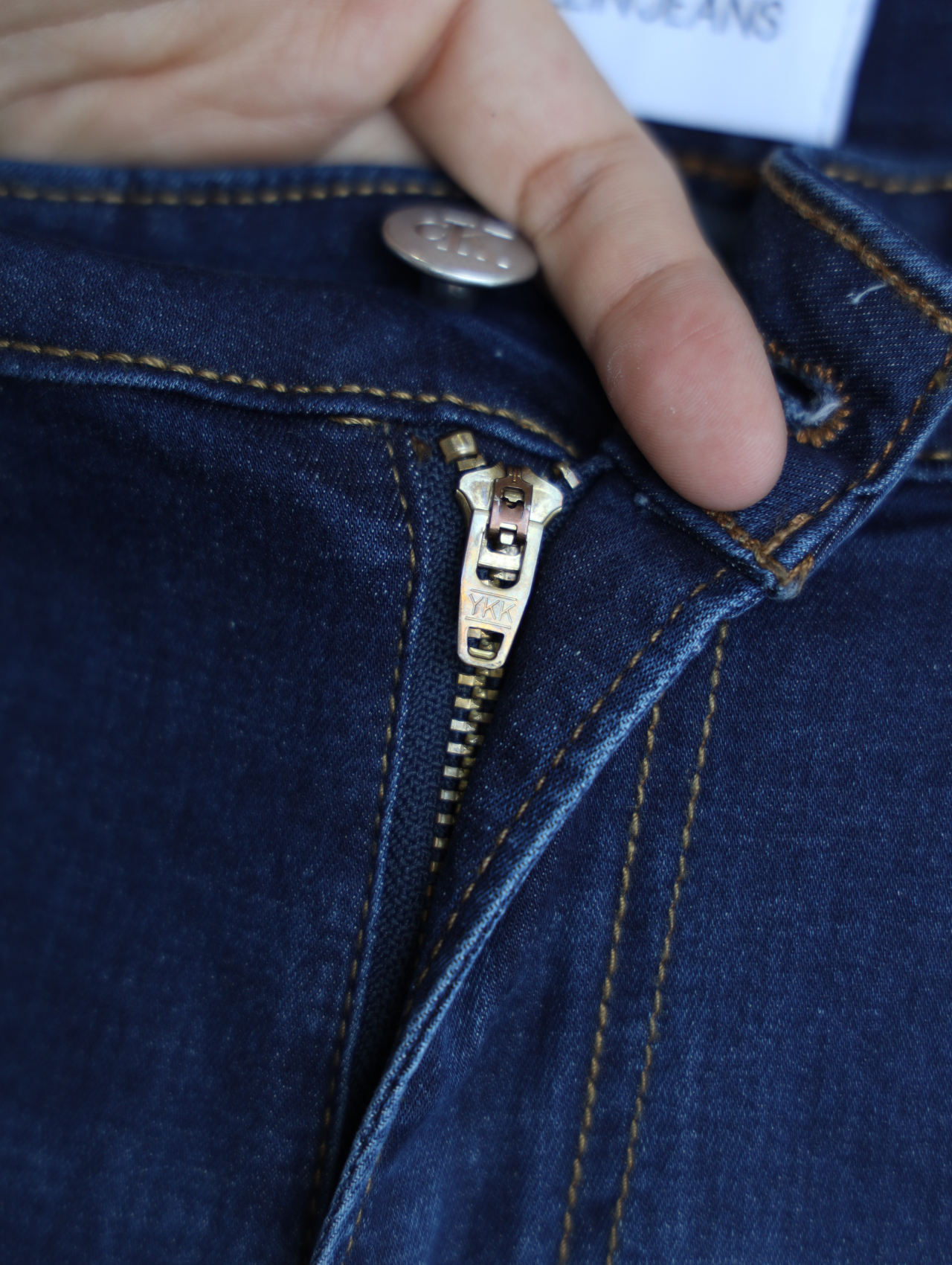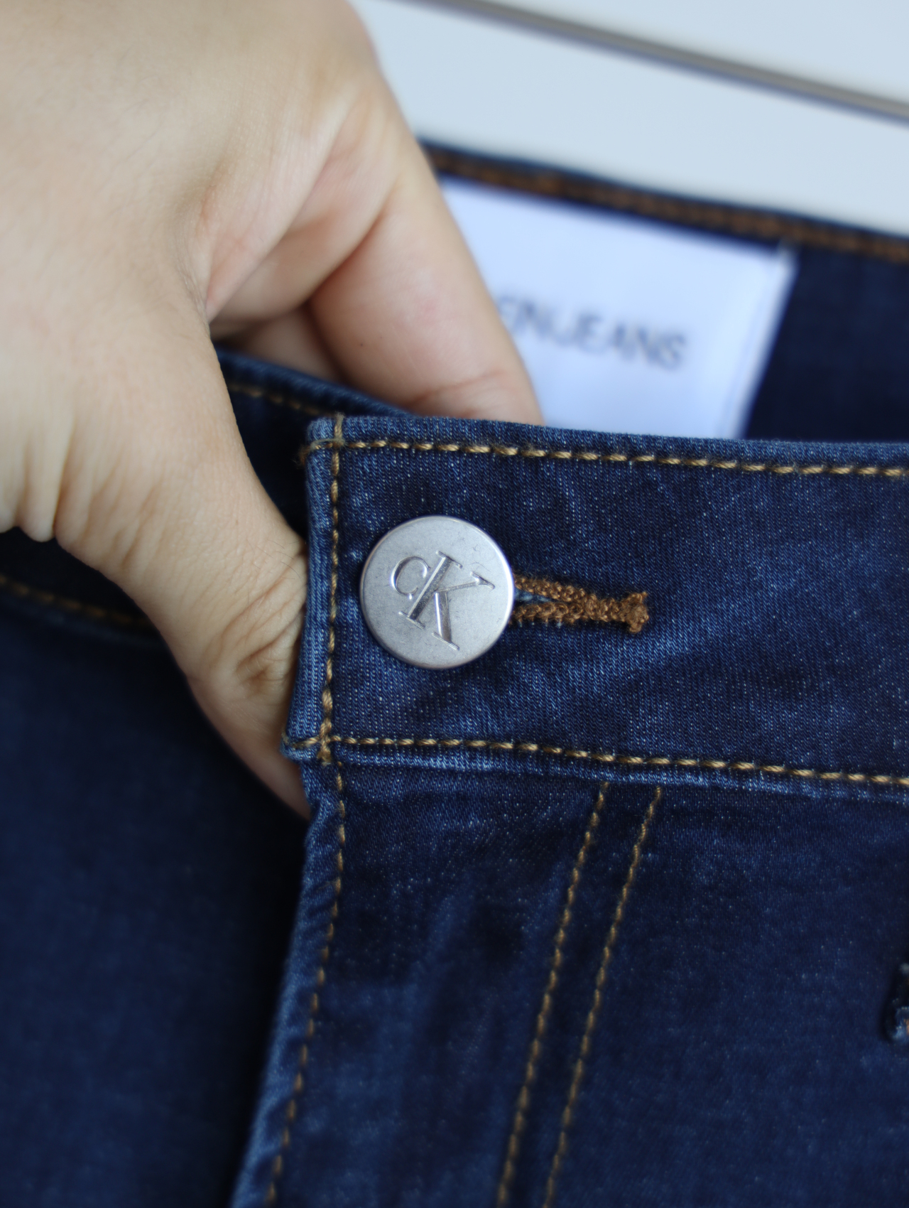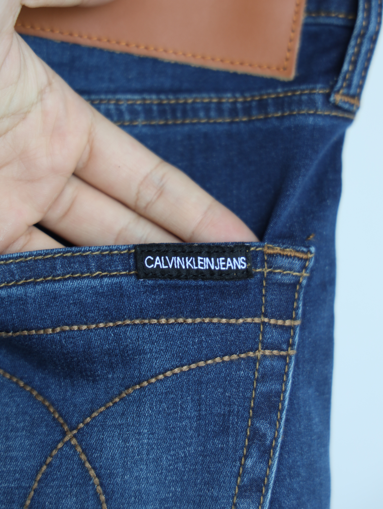 深蓝色水洗,自然做旧磨白,面料混纺带弹力