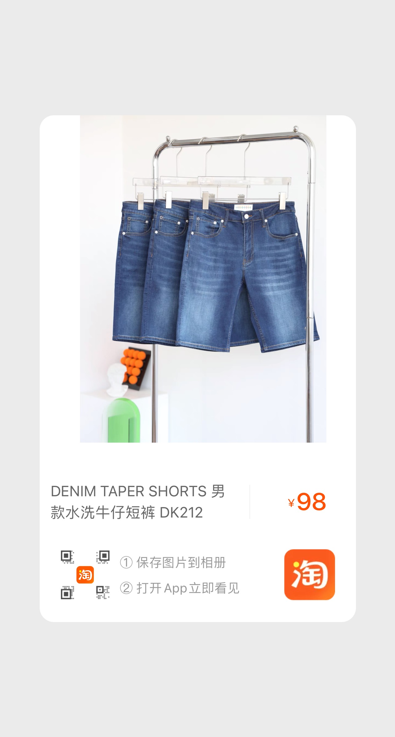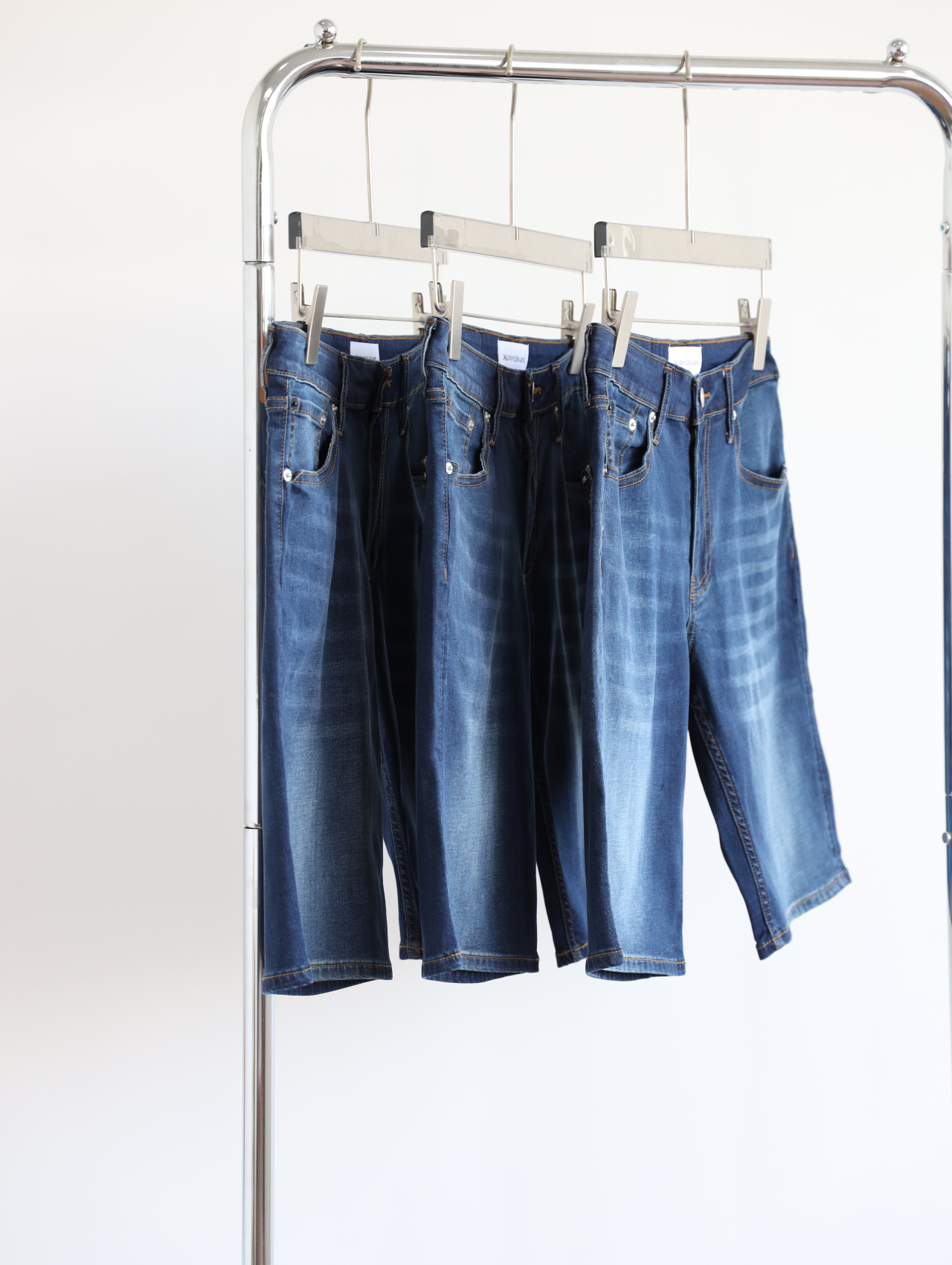 西K DENIM TAPER SHORTS 水洗牛仔短裤