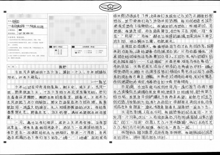 很小就培养孩子的阅读习惯和兴趣,从“有趣”的书入手,在孩子上小学之前就看带图的寓言故事,上小学时就养成了读书,看报的好习惯,随着识字的增长,就开始读长篇小说名著,慢慢养成了刘雪晨对写作的兴趣。他经常在家自己练习写作,想些什么就写什么。希望孩子一直保持写作,阅读的好习惯,继续前行,成为最满意的自己,写出更多,更优秀的作品。