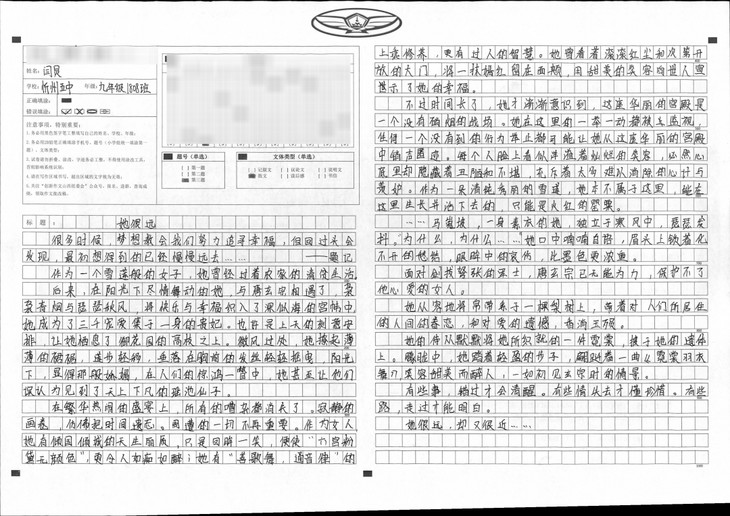 当我看到这个题目时,我毫不犹豫就选择了它,天青色等烟雨,而我们在等什么?我当时暗暗反问自己,回家后,坐在书桌前,看着桌子上的中考倒计时,脑子里灵光一闪,为什么不以中考冲刺为背景,写一篇关于追求梦想的文章呢?我拿出纸笔,一气呵成这篇文章。文章中没有太华丽的词藻,但是字字句句都是我追逐梦想的历程。既然天青色等烟雨,那我就等你---我的梦。