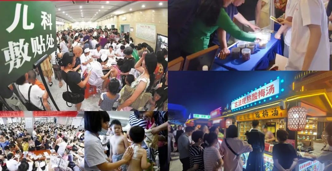 一个是排队贴三伏贴的,还有一个就是排队喝酸梅汤的~