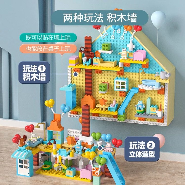 这套空中飞屋可是令万千麻麻赞不绝口,既可以给孩子玩,又可以是装饰房子的好物。有没有觉得颜色超级无敌迷人,是不是让你一眼看上就爱上的感觉呢~这飞屋是不是充满家的温馨?厨房里的灶台、浴室里的浴缸和花洒、悠闲的风扇、热烈的火炉,让这个屋子充满着爱与回忆……屋子会飞哦~那是因为有这个小法宝~能够带我们起飞的气球哦~其实它的功能和转角积木差不多,让积木们可以“悬空”着,但是它更加省空间哦~不会搭建的宝宝,内有详细引导手册,一学就能轻松搭建。空中飞屋就是我们的积木墙,空中飞屋是靠气球起飞。而积木墙是怎么上墙呢?原价188元,限时团价148元,可以说超值了。