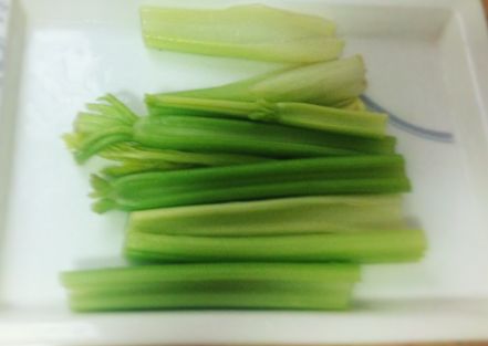 4、水芹菜切1-1.5寸长的段,放在旁边备用;