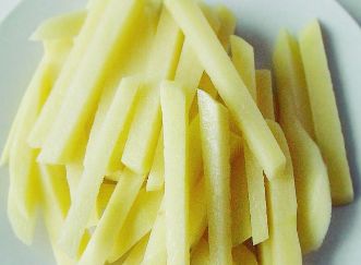 2、准备土豆,切成筷子方头粗的土豆条;