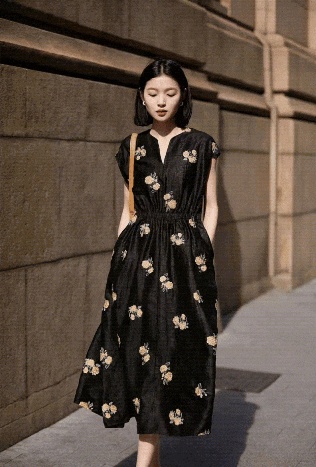 平常穿惯各种印花的女生,换上它立马有一种缥缈诗意的感觉,古韵温润不失矜贵典雅,宛若正闲庭信步的世家千金~