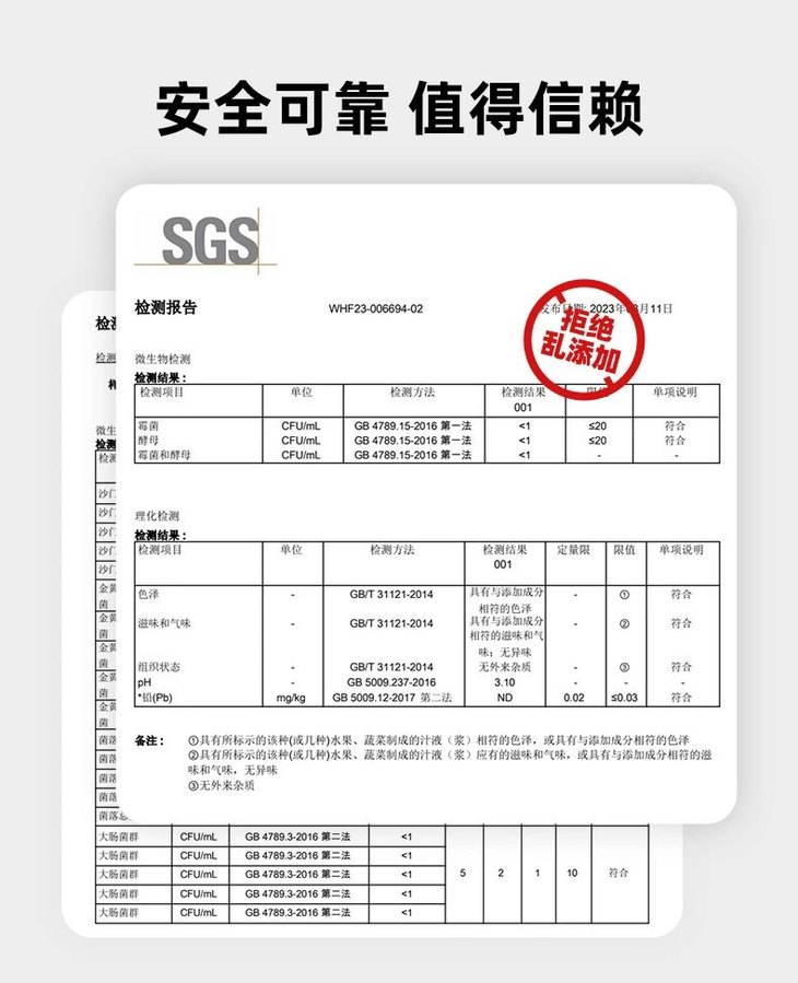经SGS检测报告,只有食材本身,拒绝额外添加