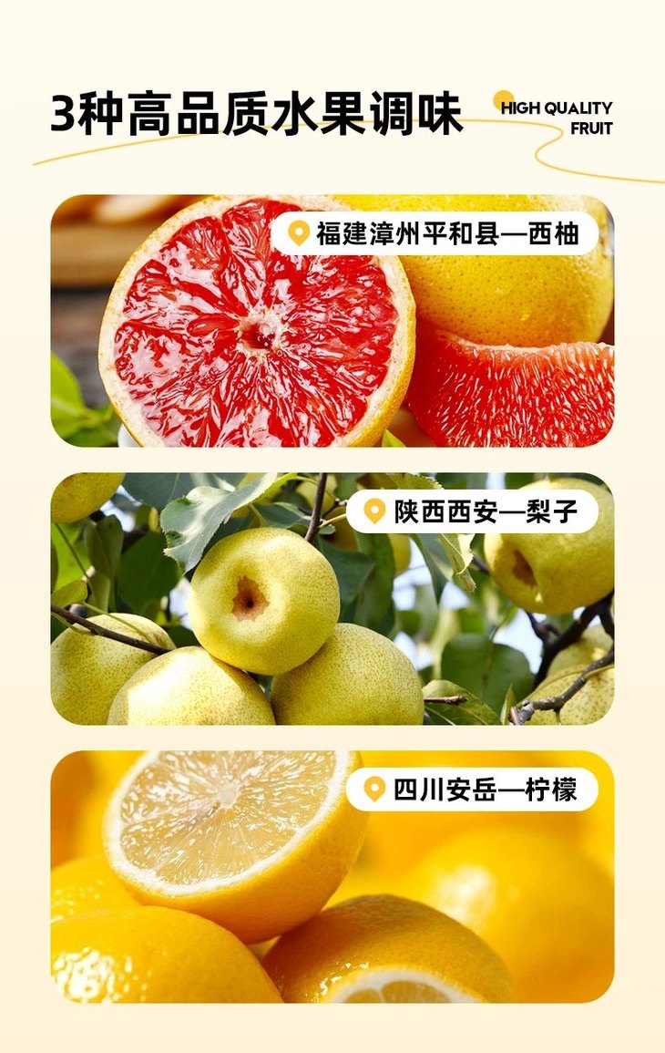 浓缩梨汁、浓缩西柚汁、金银花汁、浓缩柠檬汁