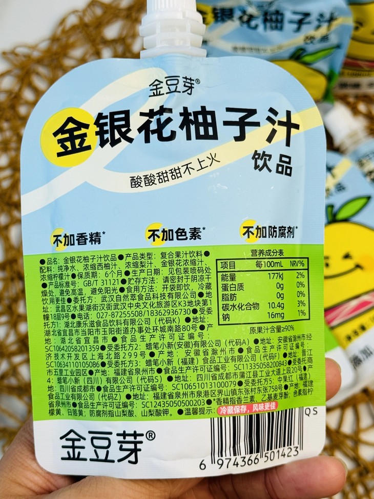 金豆芽金银花柚子汁,配料只有纯净水