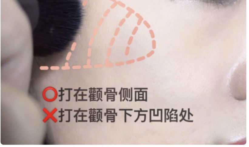 6、倒三角脸:阴影收拢额头两侧,提亮眉中眼下,脸侧阴影从耳根扫到嘴角。