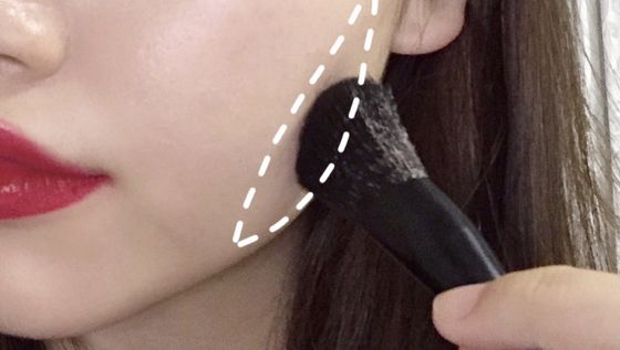 5、棱角脸:用阴影修饰脸周突出的棱角,脸中提亮柔和脸型。