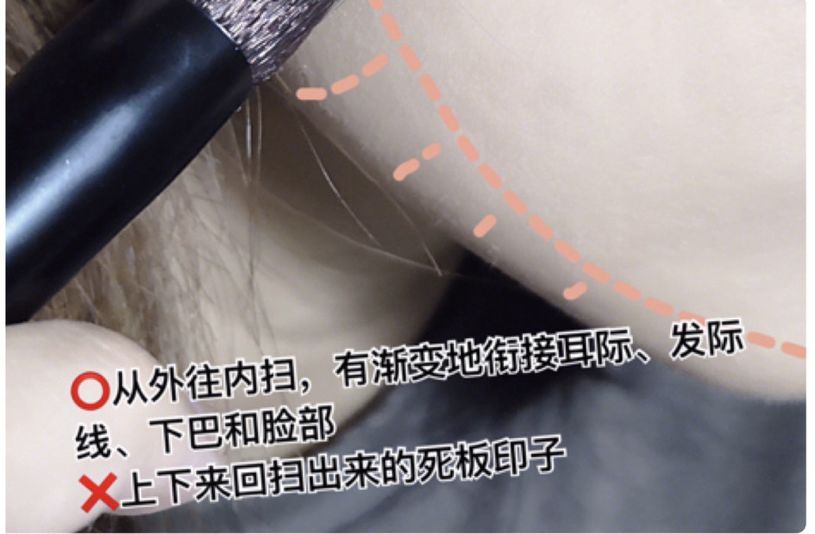 强大的它还可以修饰你的发际线,用颜色比较深的色号,适当打下阴影可以拉低你的发际线,自然到别人根本看不出!真的是发际线“救星”呀~