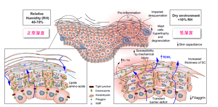 据相关数据显示,当人们在寒冷环境中长时间停留,将会导致皮肤泛红,表皮含水量下降;在干燥环境中待满7个小时,表皮含水量将会下降24%;温暖的空调室内则更不必说。