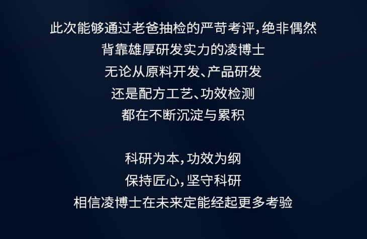 凌博士 研发即实力,专注于科技护肤、功效护肤。凌博士及团队亲研配方,用研究药学的态度研发化妆品配方,生产肌肤需求的化妆品,为您提供值得信赖的护肤产品。
