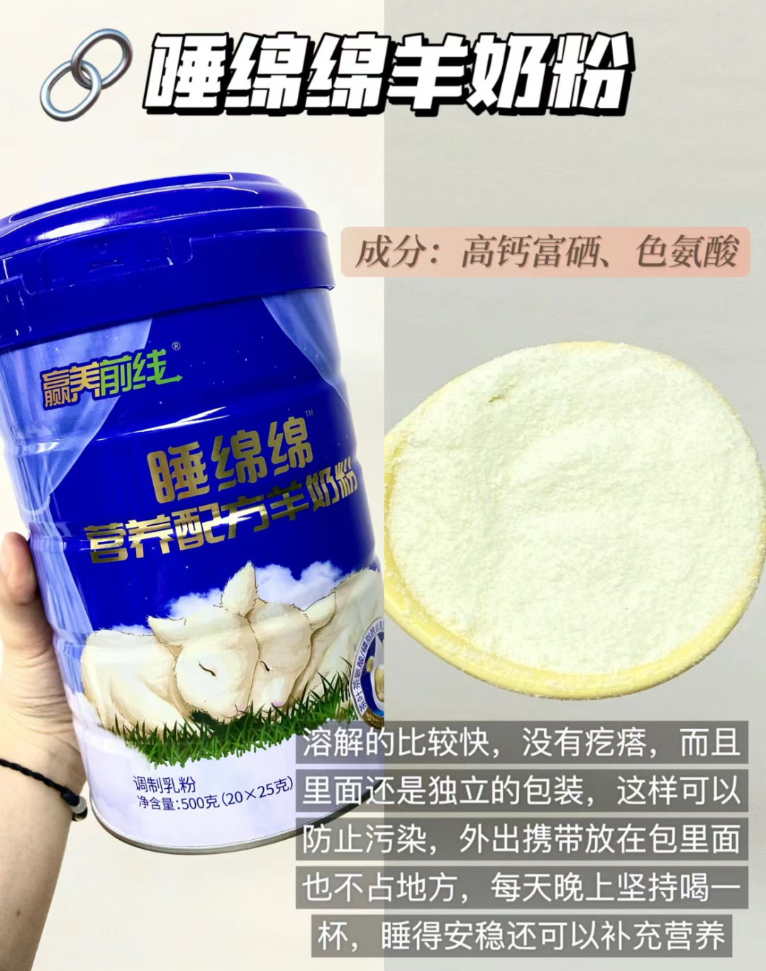 这款【酸枣仁羊奶粉】采用独立条包设计,完全避免了上述问题,每袋25g用量更精准,也更便于携带。