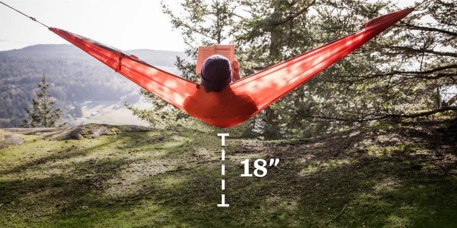 吊床要挂在离地不超过0.5米的地方。当吊床的最低点在这个高度时(你在里面),从吊床上爬出来相对容易,从吊床上掉出来也不太可能造成严重的伤害。