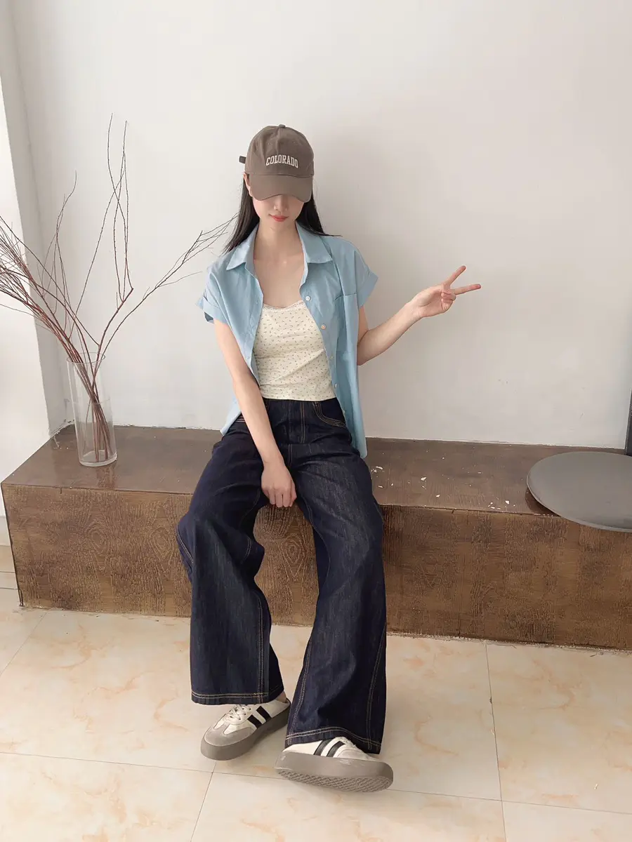 阔腿牛仔裤搭配真的太好看啦~巨遮肉的版型~腿粗胯宽的宝宝们闭眼冲!!!
