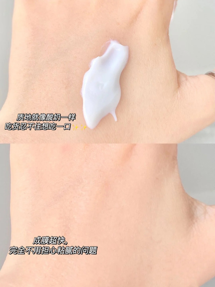 面部防晒乳霜质地,成膜迅速好跟妆,