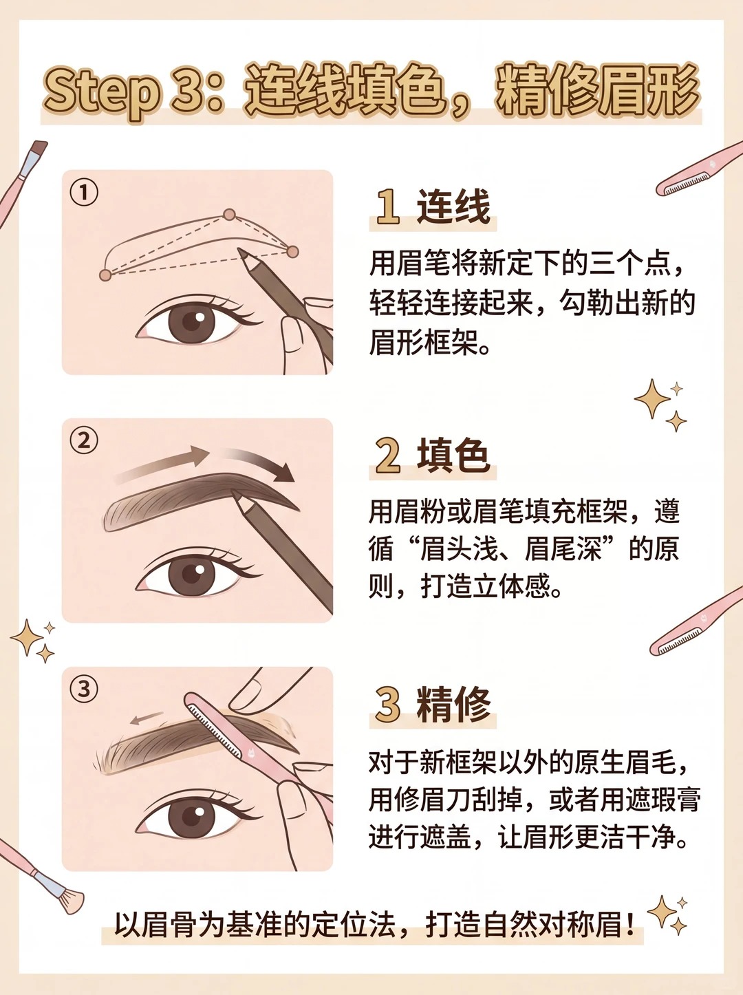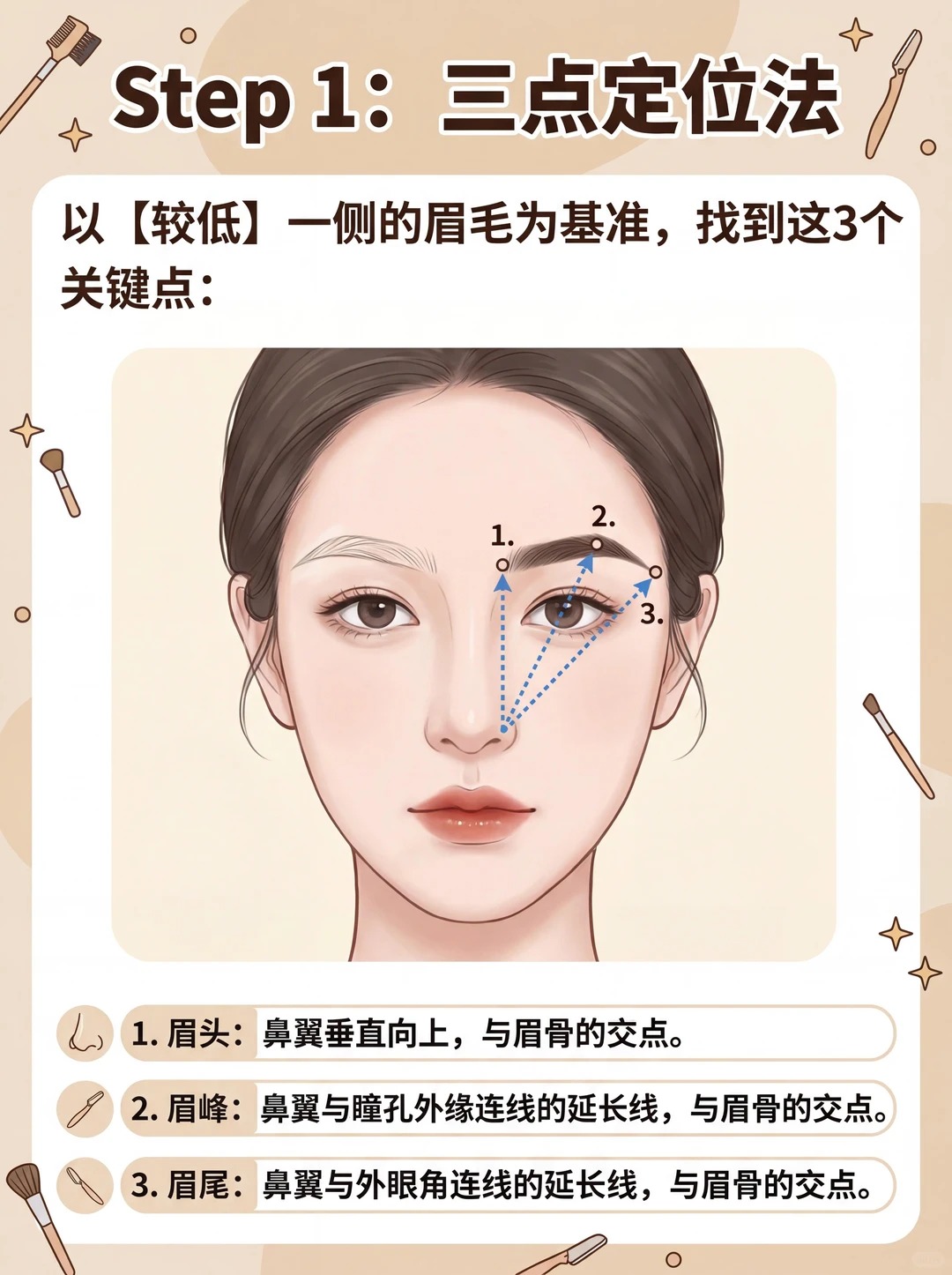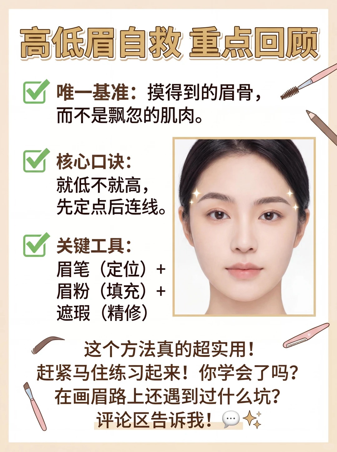 ✍️ 三步搞定高低眉,快拿出小本本: