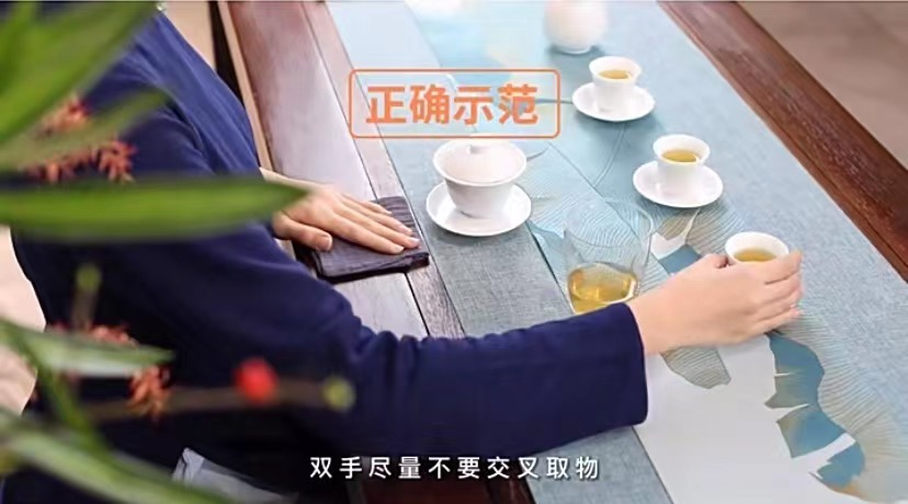 响杯擦盘:茶桌讲静,故放杯时要尽量避免发出声音,不然会有强宾压主之意。