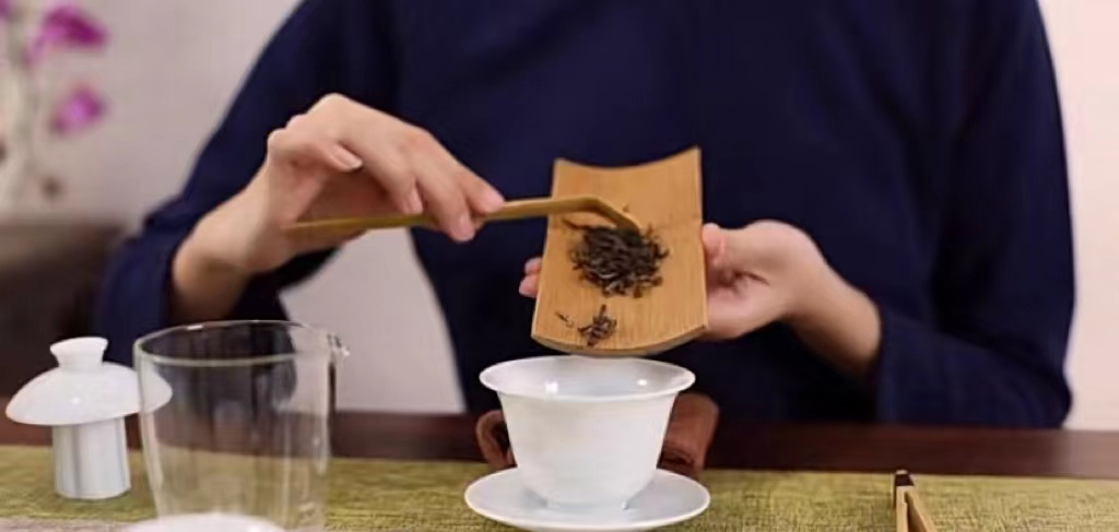 泡茶时不可用手直接抓取茶叶,应用工具取茶,保证干净卫生,不会吸附其他气味,保证茶的口感(因为茶叶具有极大的吸附能力,用手取茶容易沾染气味,影响茶汤口感)。