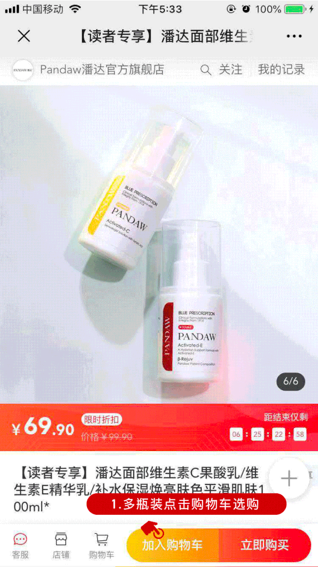 如果买多瓶装规格,比如:想买2瓶VC+4瓶VE,共6瓶,就可以按照如下操作购买!