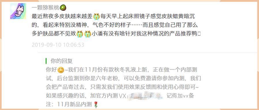 为了检测2款乳液的效果,在上新前,潘达做了一个月的百人内测,有潘达6年以上的老粉,也有小红书达人。