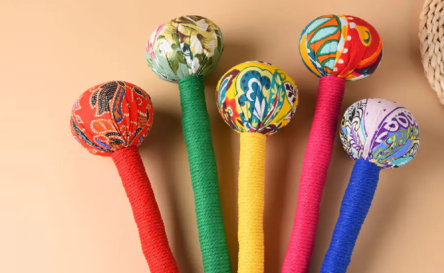 多款颜色鲜明(随机发货),以粗绳缠绕艾锤棒握手柄,考究工艺,线圈牢固不打滑,不用时可悬挂,不占用空间。