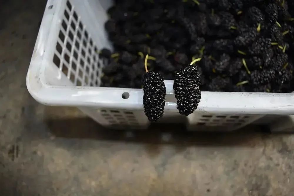 我们找了十几个产地的桑葚,一一拿来对比,从个头、颜色、口感细细挑选,十几轮筛选下才挑选出个大汁多,颜色乌黑的四川大凉山桑葚。